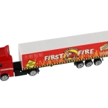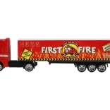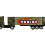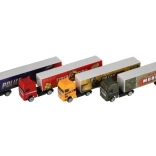 Discover a finely detailed truck with trailer that no die-cast collection should be without. The metal cab gives the model a realistic look and greater durability, while plastic accessories keep the weight low for easy handling. Thanks to the freewheel drive, a light push sets the truck smoothly in motion.