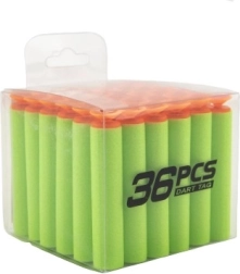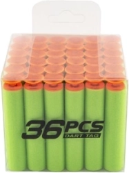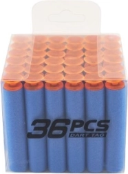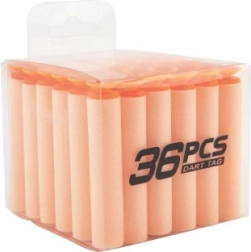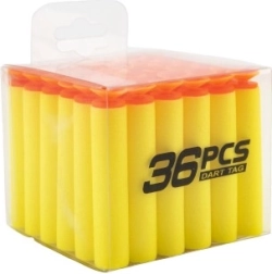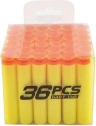 Replenish ammo for your foam blasters with a handy set of 36 replacement suction darts in a transparent box. The soft foam darts are safe for play, compatible with common toy blasters, and the portable case keeps a supply always at hand.