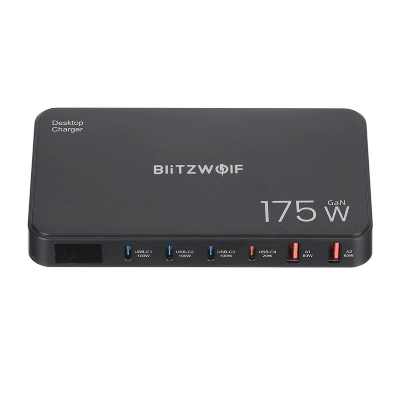 BlitzWolf desktop GaN charger 175 W, 4× USB‑C + 2× USB‑A, 6‑in‑1