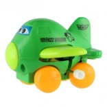 Thanks to the simple mechanical drive without batteries, the airplane is ideal for home and travel. Bright colors support visual perception, and the moving wings invite repeated play that develops fine motor skills and hand–eye coordination.