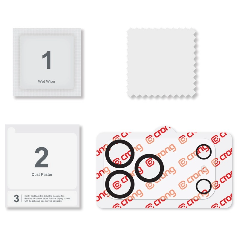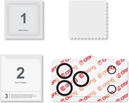 Special anti-reflective rings around the lenses help maintain high photo and video quality without glare. Installation is quick and clean — the transparent adhesive ensures precise placement, and the box includes everything you need to prepare your phone.