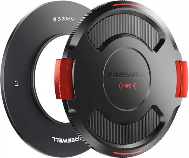 The Freewell base ring is designed for lenses with a 52 mm thread and forms the core of the modular Real Locking system. Thanks to precision-milled aluminum, it ensures firm and stable mounting of VND/CPL filters and compatible caps. The package includes a protective cap with latches and integrated NFC for instant access to manuals, warranty, and support directly from your phone.