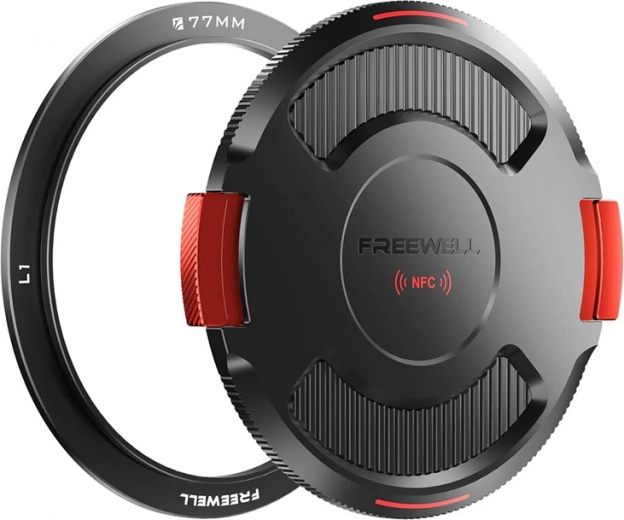 The universal Freewell 77 mm basic ring is a key component of the Real Locking VND/CPL system for quick and secure filter mounting. It offers precise aluminum construction, solid attachment, and full compatibility with VND filters and protective caps. It includes a cap with NFC for quick access to manuals and warranties and for reliable lens protection during transport.
