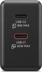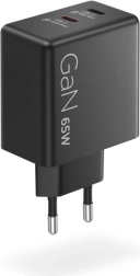 Compact dual USB‑C 65 W charger with GaN technology quickly and safely charges two devices at the same time — from laptops to phones and tablets. Lightweight and travel‑friendly, ideal for everyday use and trips.