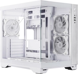 The elegant CHIEFTEC Visio PC case in white offers dual-sided tempered glass, a dual-chamber design, and full compatibility with rear-connector motherboards (ASUS BTF, MSI Project Zero). It comes pre-installed with 6× 120 mm ARGB fans and includes a controller for ARGB sync and fan speed control via the motherboard. Supports radiators up to 360 mm, graphics cards up to 410 mm, and CPU coolers up to 175 mm.