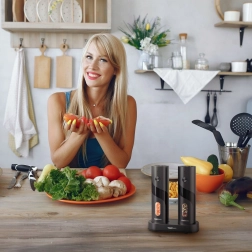 With the USB‑C charging base, there’s no need to deal with batteries—the grinders are always ready. Ceramic burrs preserve aroma and resist corrosion. Adjustable coarseness lets you switch from fine powder to coarse pieces in seconds, perfect for salads, steaks, and soups.