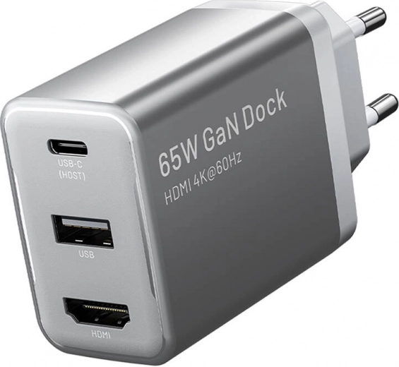 The Vention GaN Switch Dock charger is a sleek and portable solution for work and travel. With USB‑C Power Delivery 65 W, it quickly charges laptops, tablets, and phones; USB‑A is ideal for accessories, and via HDMI 2.0 you can connect a display up to 4K at 60 Hz for smooth visuals and higher productivity.