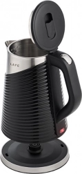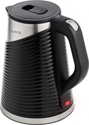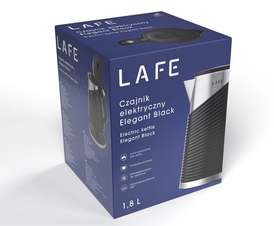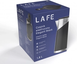 The stylish Lafe Elegant Black electric kettle combines modern design with safe operation. With a 1800 W power rating it heats water quickly, the double wall retains heat longer, and the cool touch surface stays cool to the touch. It features auto shut-off when empty, overheat protection, a limescale filter, and a concealed plate heating element for easy cleaning.