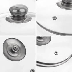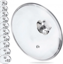 The 28 cm glass lid is a practical accessory for everyday cooking. Transparent, heat-resistant glass (up to 200 °C) lets you keep an eye on your dish, while the stainless steel rim and knob provide durability, stability, and long service life. Thanks to its universal size, it fits most pots, pans, and saucepans of the same diameter.