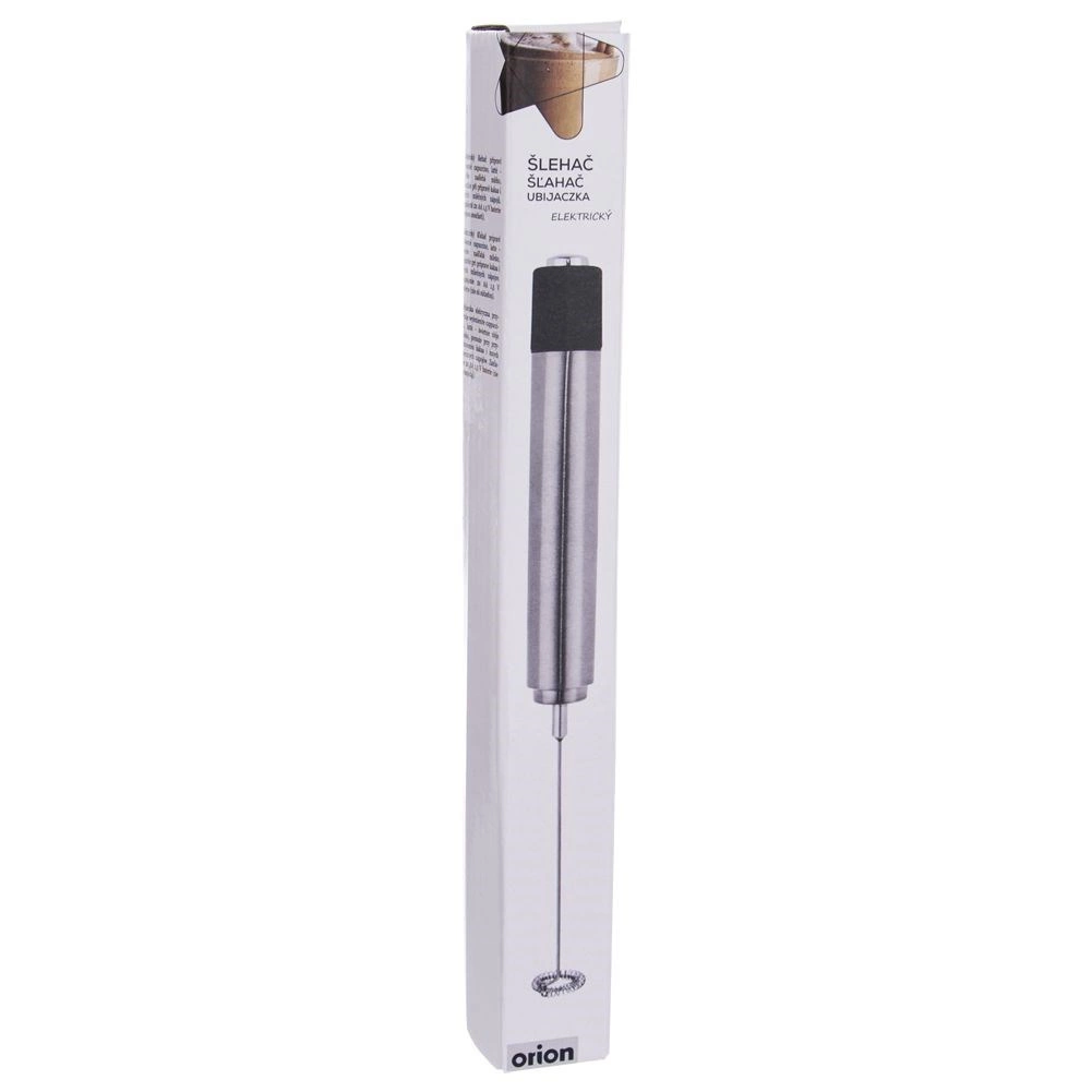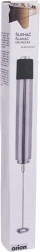 Compact electric milk frother, 28 cm long, for quick preparation of homemade cappuccino, latte macchiato, and hot chocolate. Thanks to the durable stainless steel body and simple one-button operation, you can create silky foam in seconds. It also reliably blends ingredients without lumps for sauces, cocoa, or pudding. Powered by 2× AA batteries (not included). Durable stainless steel, multi-purpose use, easy maintenance.