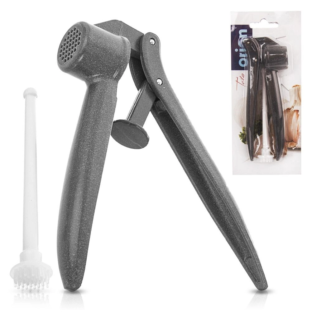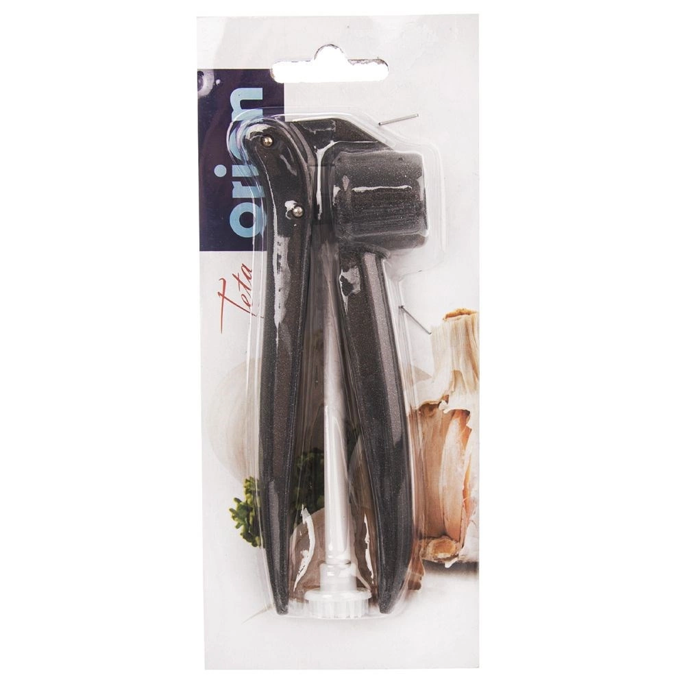 This robust garlic press made of quality coated aluminum makes meal prep significantly easier. Thanks to ergonomic handles and a precise pressing chamber, you can quickly create smooth garlic purée with minimal effort. The package includes a practical cleaner that helps remove residues from the holes for perfectly hygienic use.