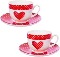Enjoy your favorite coffee, tea, or herbal infusion with this timeless set of two cups with saucers. The combination of white and red with a polka dot pattern and heart motif feels romantic yet elegant—perfect for everyday use and festive table settings.