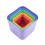 The durable plastic without sharp edges is suitable for play both indoors and outdoors—you can take the cubes to the sandbox or into water. The pieces nest easily, so the set takes up little space and is easy to store.