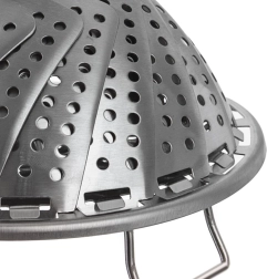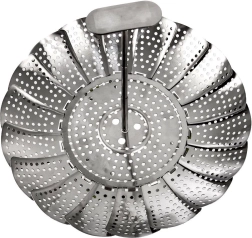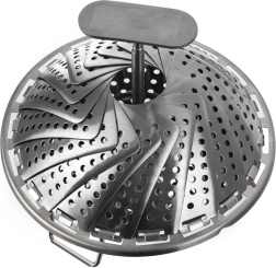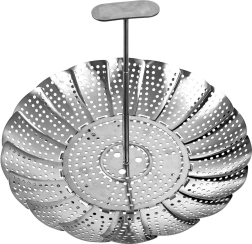 A practical folding steamer made of quality stainless steel, ideal for steam cooking. The expandable 14–23 cm diameter allows use in variously sized pots, while the perforated “petals” ensure even steam circulation and gentle food preparation.