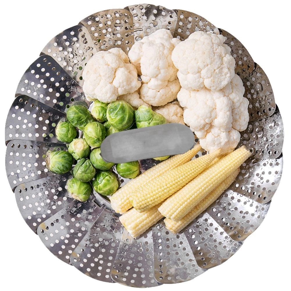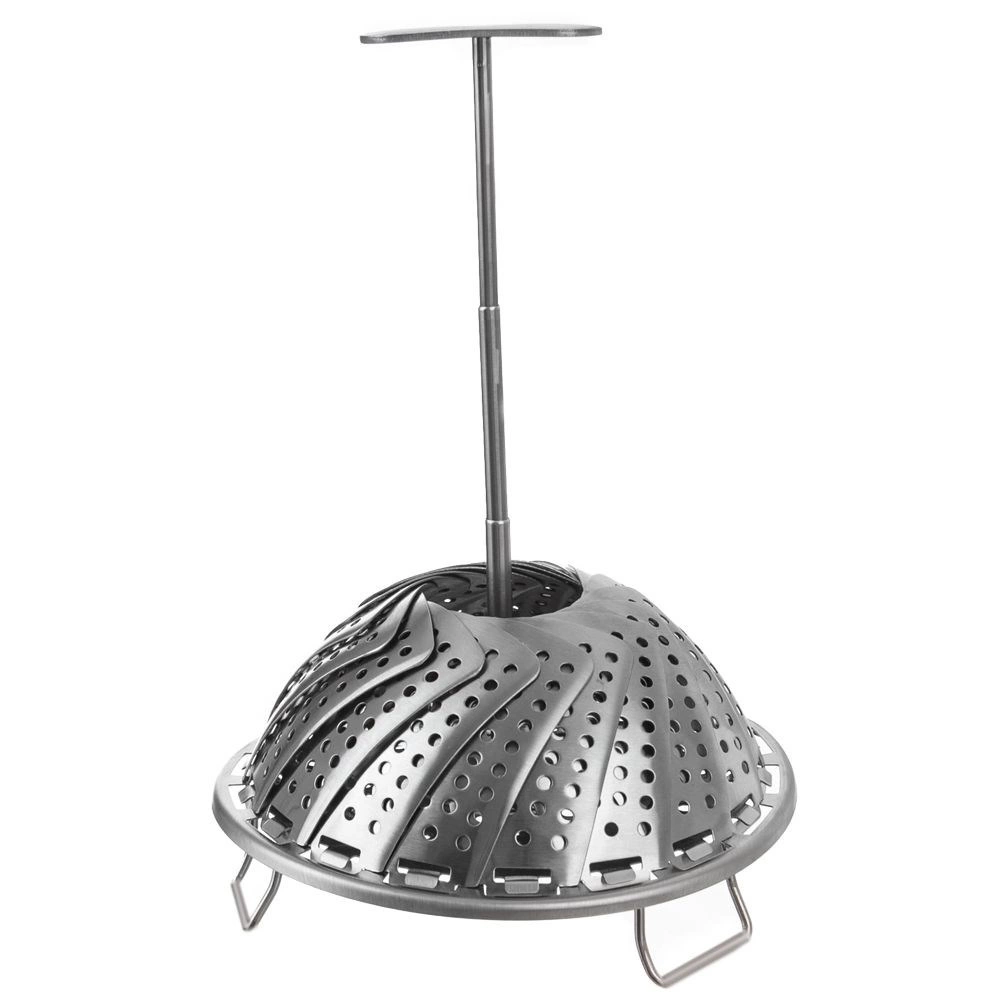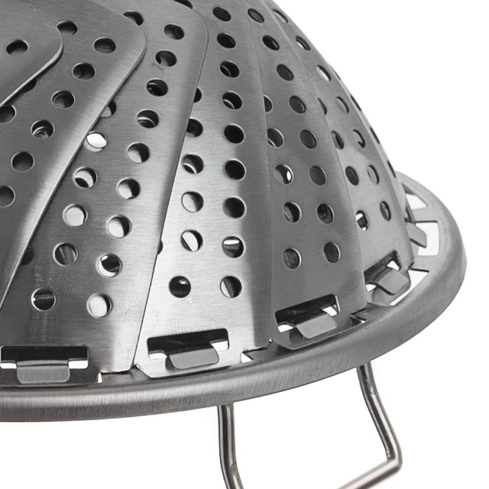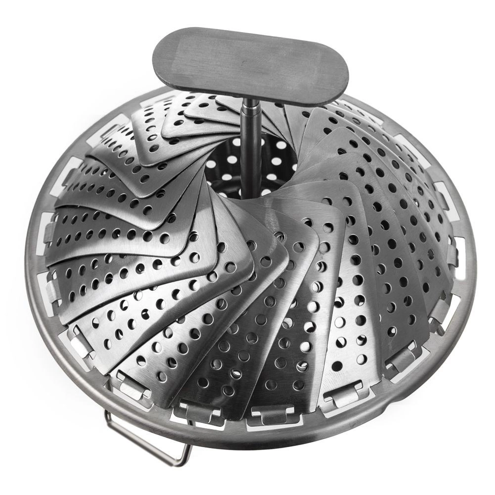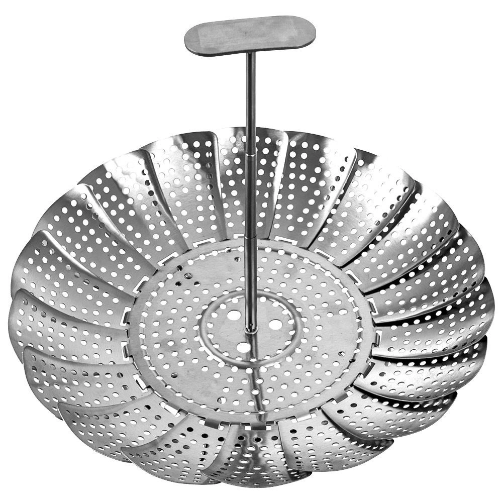 Steaming helps preserve the vitamins, minerals, and natural flavor of ingredients. The basket has foldable feet for safely resting above the water level and a central handle for easy insertion and removal. After use, simply fold it down to a compact size for storage.