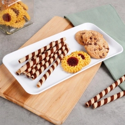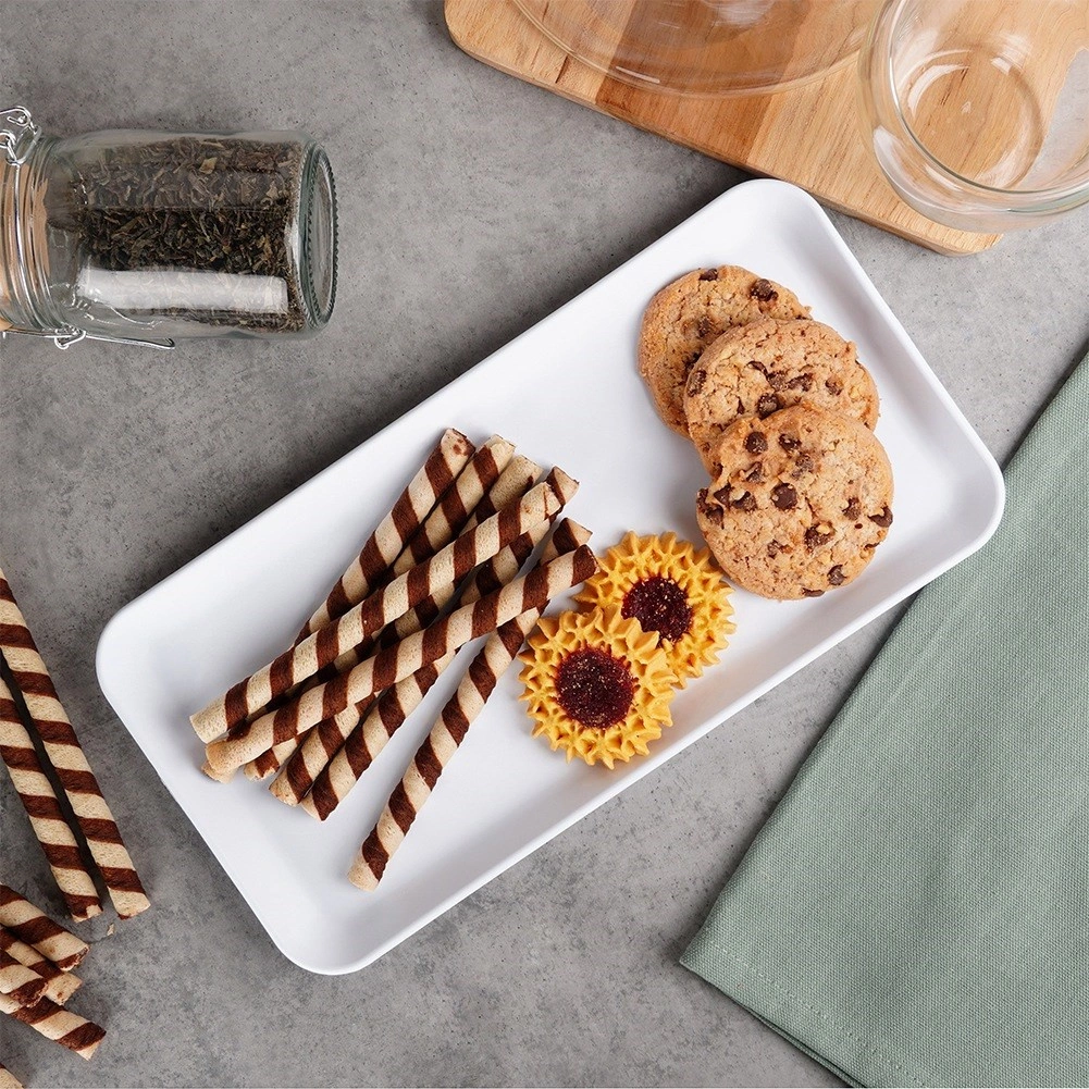 Elegant white rectangular serving tray measuring 29.5 × 15 × 2 cm, ideal for everyday use and festive dining. It is lightweight, durable, and easy to clean. Perfect for serving sweet and savory snacks, fruit, or small courses, and its minimalist design beautifully complements any table.