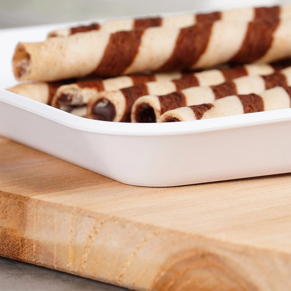 The 29.5 × 15 cm size with a low rim keeps treats together and makes carrying easier without mess.