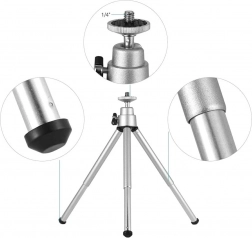 This compact tripod is made from quality aluminum, guaranteeing high durability and structural strength. It is perfect for macro photography with the ability to set in any position using a movable head that moves in three directions. The universal 1/4'' screw thread is compatible with most cameras and camcorders.
