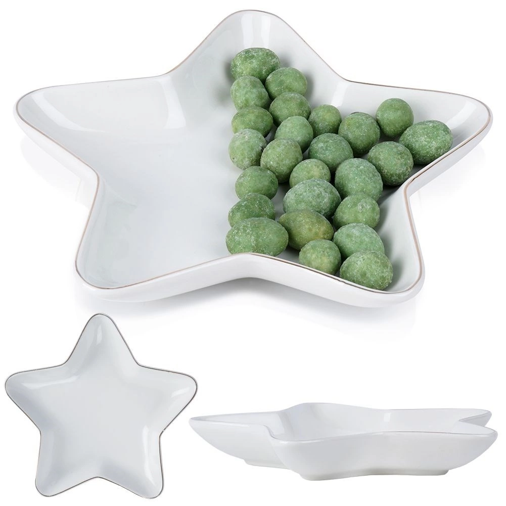 Create a festive atmosphere at the table with this decorative star-shaped plate. Quality white porcelain and a subtle design enhance the presentation of cookies, nuts, canapés, and small desserts. The plate is sturdy, durable, and thanks to its practical dimensions, fits any household.