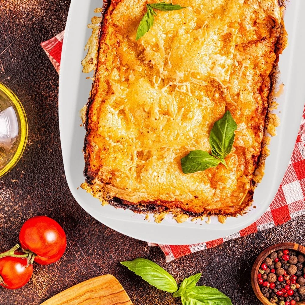 High-quality porcelain ceramic retains heat and ensures even baking of lasagna, scalloped potatoes, and desserts.