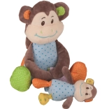 This large CHEEKY plush monkey from Bigjigs Baby is an ideal companion for the very youngest. The super-soft body, cuddly design, and detachable little monkey bring plenty of fun and soothing comfort. The integrated teether relieves sensitive gums, while the rattle stimulates hearing and attention.