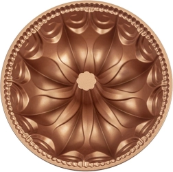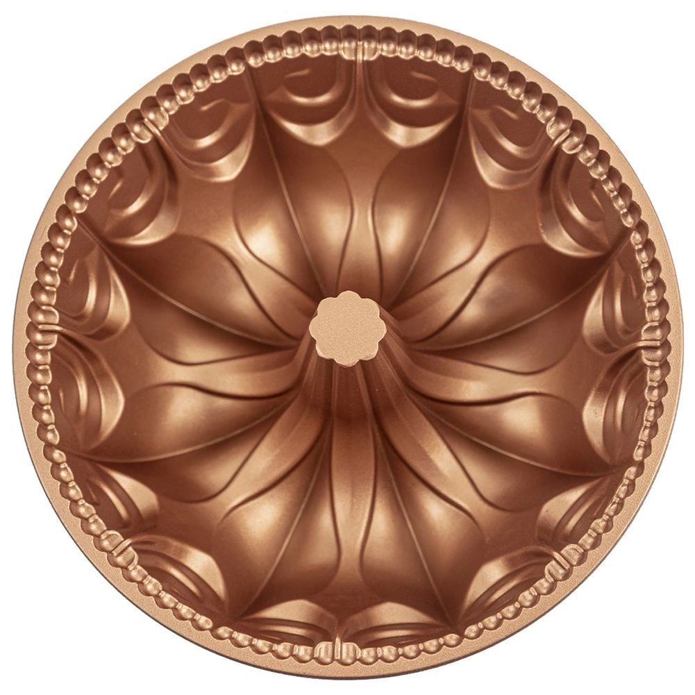 This decorative bundt pan with a copper-look finish is ideal for everyday baking and festive desserts. Thanks to its aluminum construction, it conducts heat perfectly, and with the double non-stick PFLUON coating you can easily release even delicate batters without sticking.