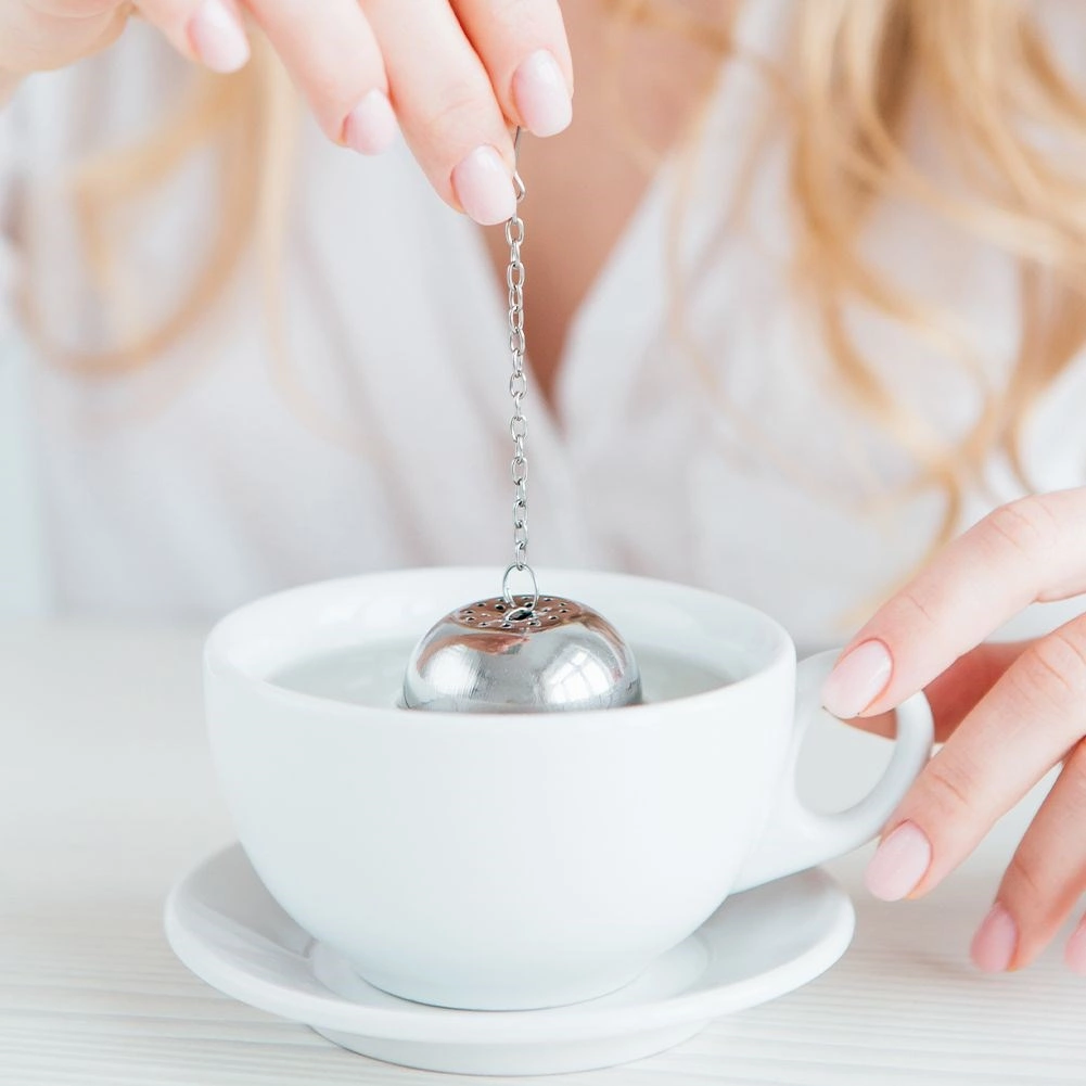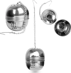 Stainless steel tea infuser in a 5 cm ball shape ensures a clear brew without leaves and maximum tea and herb aroma. Thanks to the chain with hook, you can easily hang it on a mug or teapot, the secure closure prevents spillage, and the quality stainless steel guarantees long life.