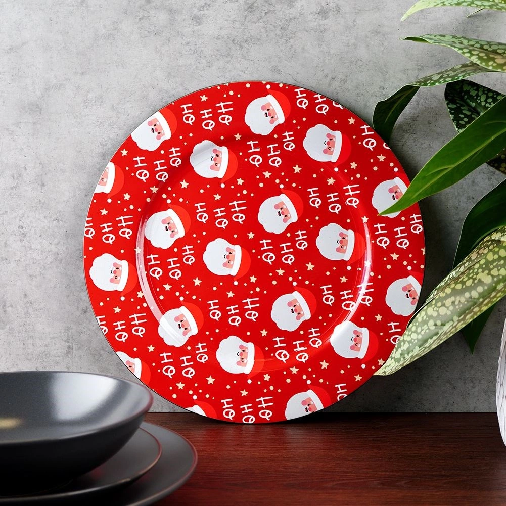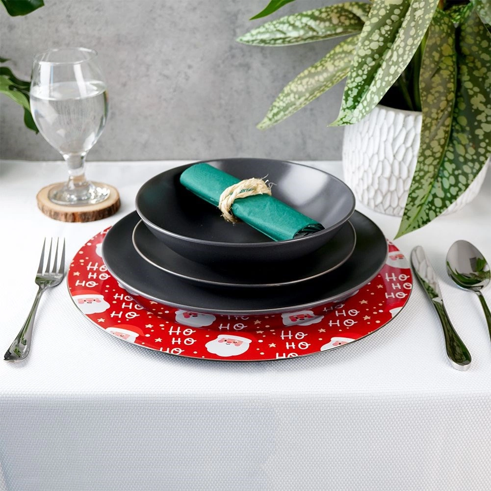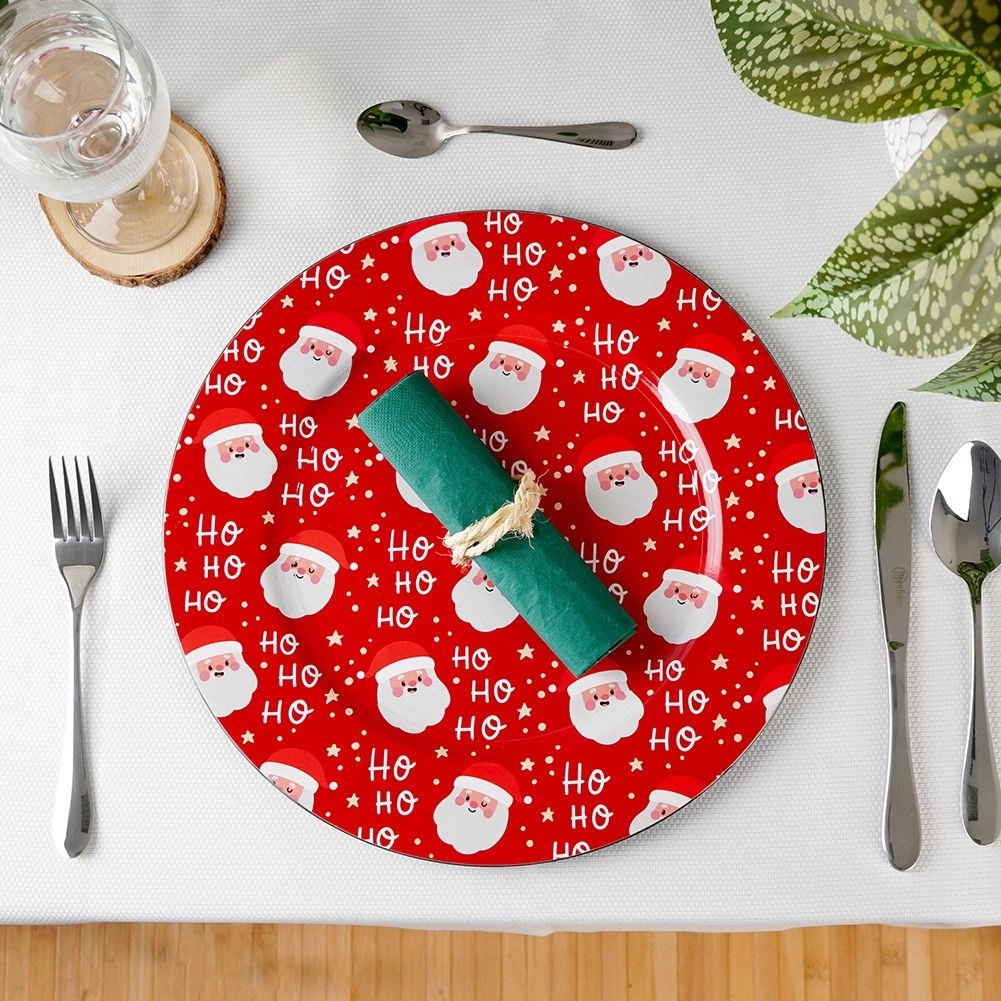 Bring Christmas magic to your holiday table with this red charger featuring a repeating SANTA motif and “Ho Ho Ho” text. The glossy surface and bold print make it a great base for plates and festive arrangements. Ideal for family dinners, Christmas treats, and celebratory decorations.