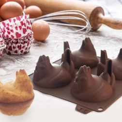 This brown silicone mold lets you prepare cookies, mini bundt cakes, pralines, or chocolates in the shape of adorable hens. Thanks to the flexible and non-stick material, finished shapes pop out easily without torn edges, and the detailed motif stands out beautifully.