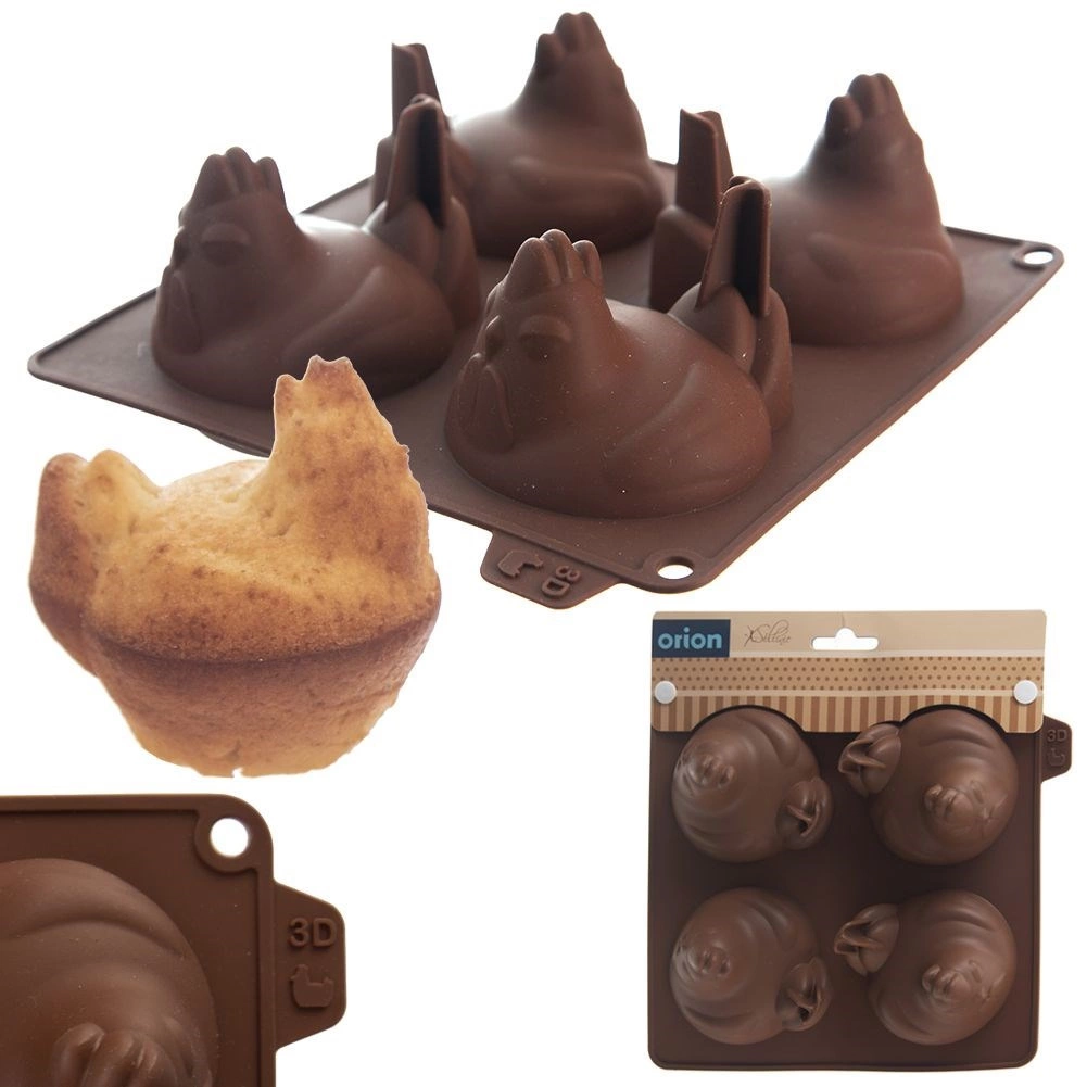 A practical silicone mold for baking and casting in the shape of hens creates up to 4 realistic 3D shapes at once. Made of quality silicone, non-stick, temperature-resistant from -40 to +220 °C, and suitable for oven, microwave, and freezer. Easy to clean, dishwasher safe, and ideal for Easter and year-round baking.
