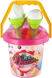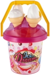 The lightweight plastic bucket with handle, 3 cones, and an ice cream scoop are perfect for the sandbox, beach, and garden. Thanks to CE certification, the set is suitable and safe for little ones.