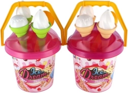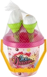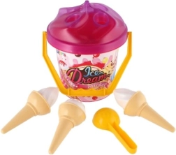 This colorful sand set with a stylish pink lid and “Ice Dream Bucket” motif encourages imagination and fine motor skills as well as social skills while playing café, restaurant, or shop. The lid has special holes for shaping scoops, making sand “ice cream” look just like the real thing.