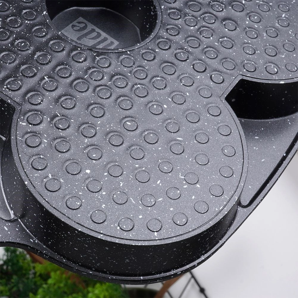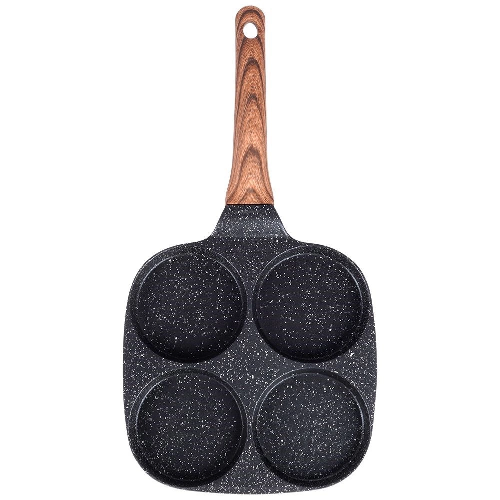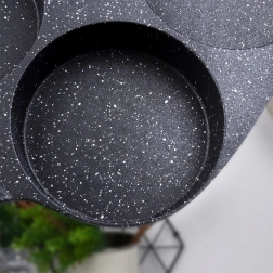 Bring everyday comfort to your kitchen: the BLACK&WOOD granite pan measuring 19 × 19 cm offers four separate cavities for perfectly round portions. Effortlessly prepare sunny-side-up eggs, breakfast fritters, and small pancakes—quickly, evenly, and with minimal fat thanks to the non-stick surface treatment.