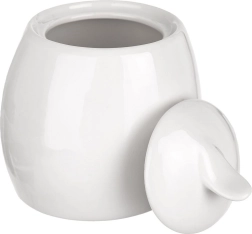 This stylish sugar bowl made of quality white porcelain combines a sleek look with practical use. Thanks to its compact size, it looks great on the table, and the lid with a knob keeps the contents fresh and protected for longer.