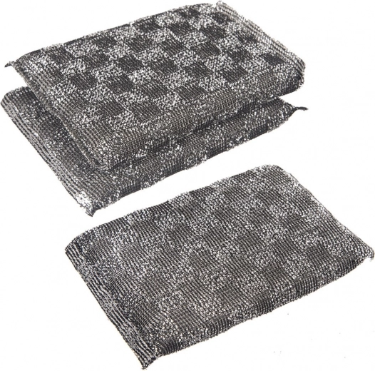 The set of 3 wire scourer-type sponges is ideal for kitchenware, pans, pots, and countertops. The inner foam provides excellent absorbency, while the durable outer polyester layer tackles grease and burnt-on residues without unnecessary scratching.