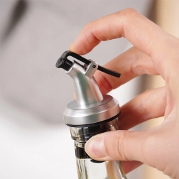 A practical glass bottle with a metal cap and flip-top spout enables convenient dosing of olive oil, vinegar, or homemade infused oils. Thanks to the precise dispenser, you can easily measure the right amount and avoid mess when seasoning or cooking.