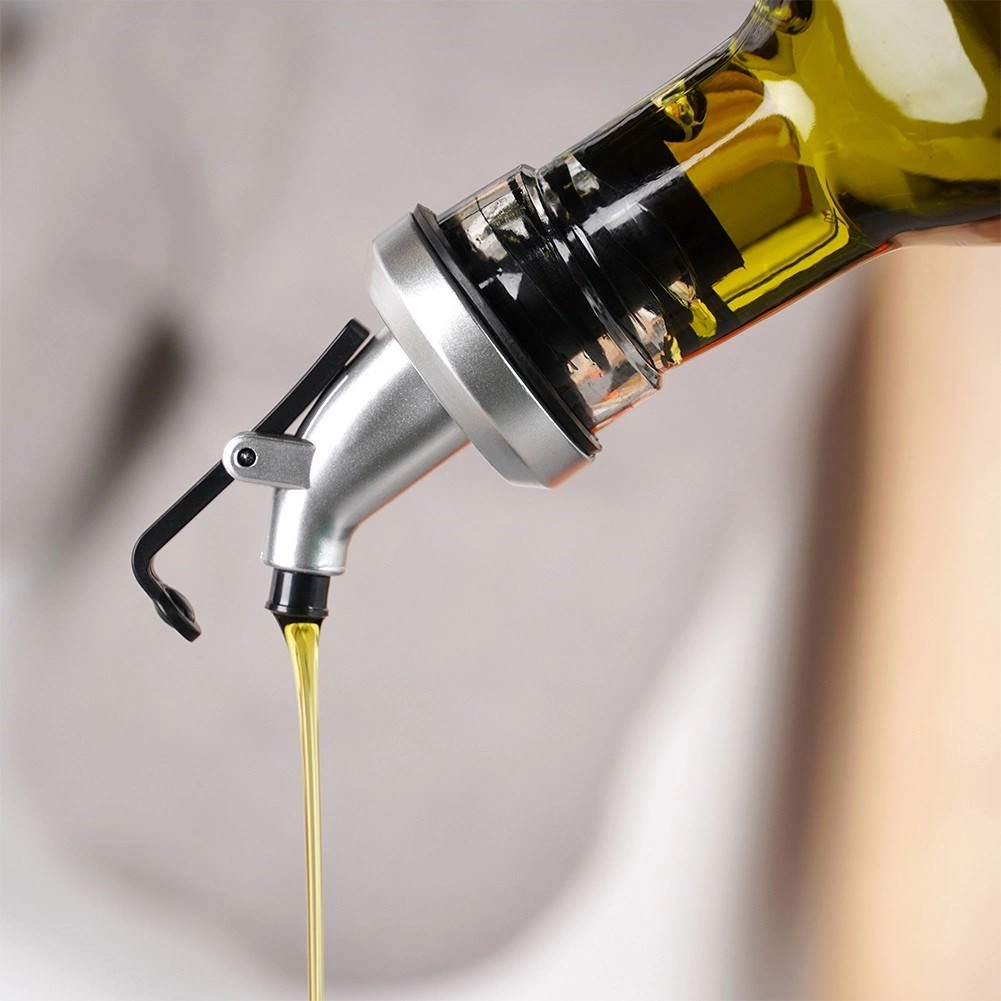 The flip-top spout with a sealing insert slows the flow, prevents dripping, and lets you dispense oil or vinegar precisely without mess.