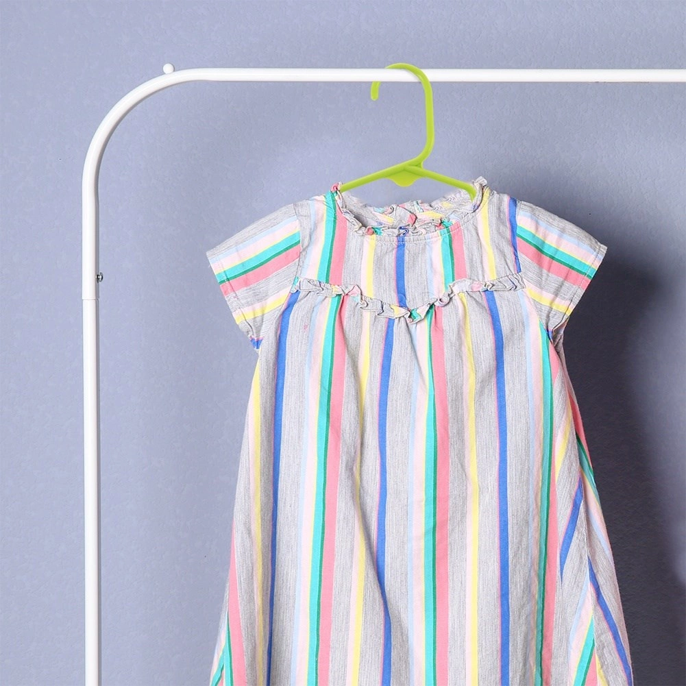 The set of 5 children's hangers is ideal for T-shirts, hoodies, strappy dresses, and lightweight trousers. The hangers feature rounded edges to be gentle on kids’ clothing and notches for spaghetti-strap dresses. The bottom bar helps hang scarves or thin trousers.