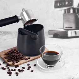 Keep your coffee corner clean and organized. This knock box for spent coffee conveniently holds multiple pucks, so you don’t have to run to the trash all the time. Robust plastic in sleek black, a removable rubber bar, and easy maintenance make it an ideal companion to a portafilter espresso machine.