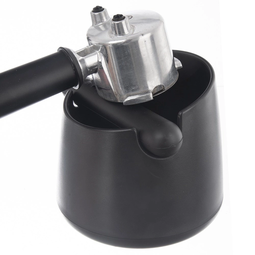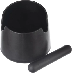 The non-slip base with a felt pad keeps the container firmly in place, while the rubber bar absorbs impact and protects the portafilter.