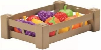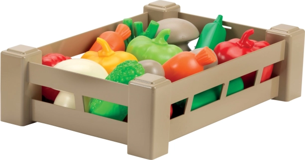 This realistic plastic crate is filled with colorful play fruit and vegetables that spark children's imagination and help develop fine motor skills. Ideal for kids' play kitchens, play corners, and preschools.
