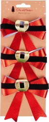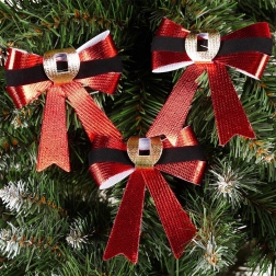 Bring Christmas magic home with this set of 3 decorative bows. The red metallic sheen, contrasting velvety black band, and gold buckle-like accent look elegant and pair perfectly with both classic and modern decorations.