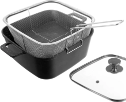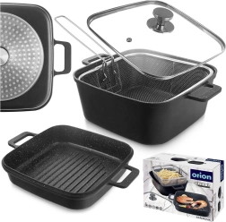 Granite square pot with glass lid, grill pan and basket 4.5 l + 2 l, 4 pieces