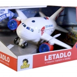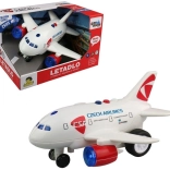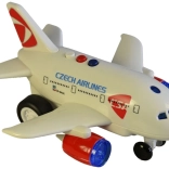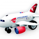 A realistic children's airplane licensed by CSA delights young pilots with authentic captain and flight attendant announcements, light effects, and a simple friction motor. An ideal toy for kids who love airplanes and want to experience a takeoff, flight, and landing like on a real aircraft.