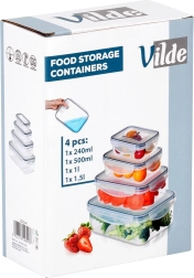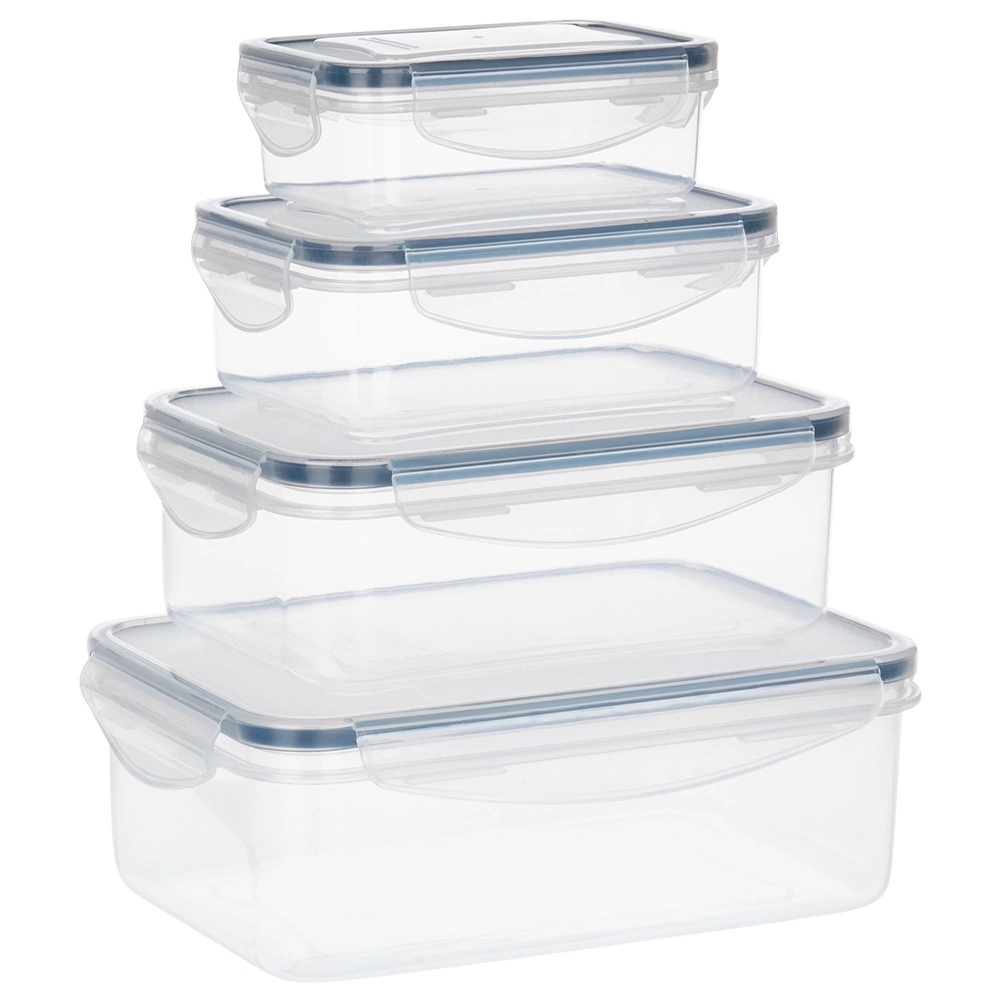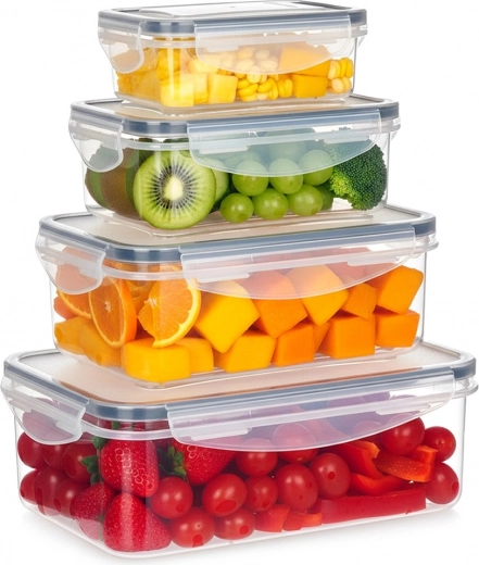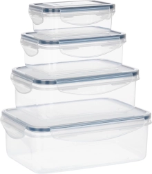 Set of plastic food containers with lids and sealing, 4 pcs