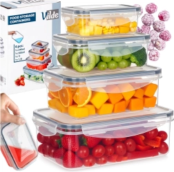 A practical set of four clear containers with lids and silicone seals keeps your food fresher for longer and safely stored. Various sizes for storage and meal prep, airtight closure thanks to four clips, BPA-free and suitable for the dishwasher, microwave (without lid) and freezer.