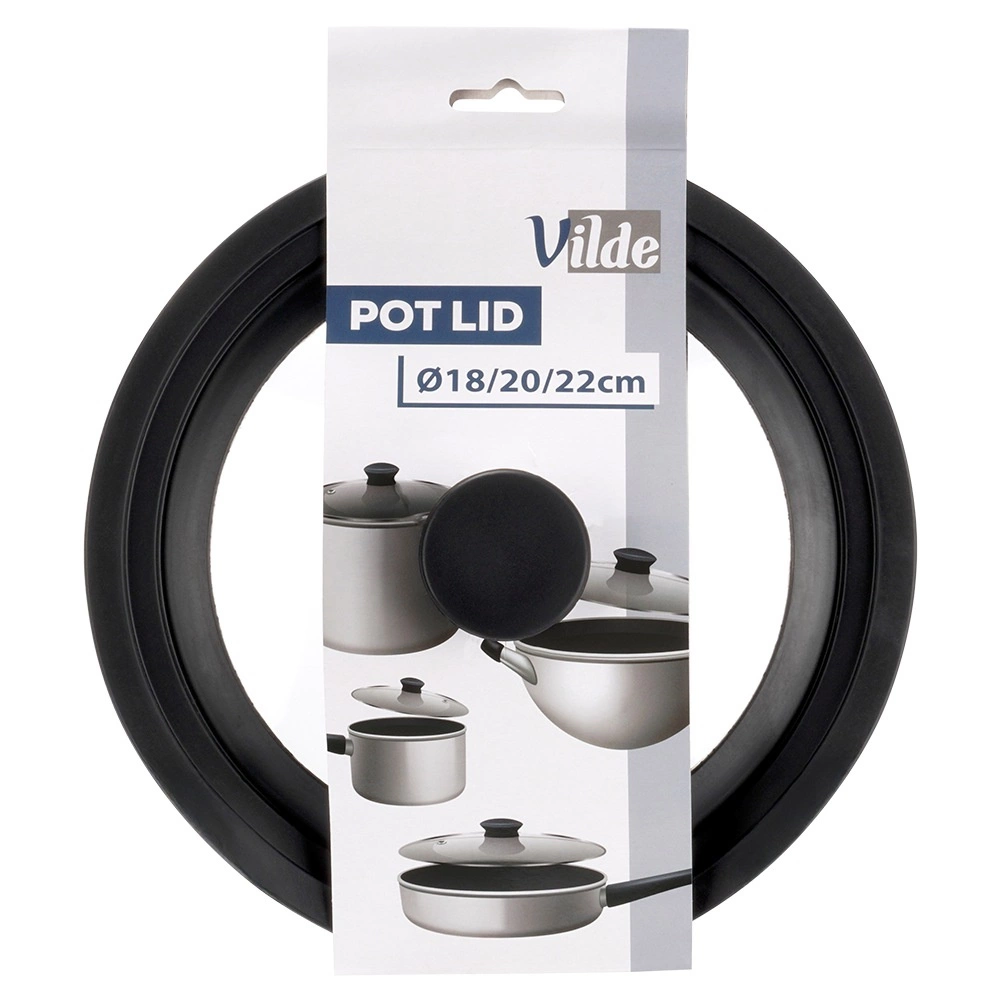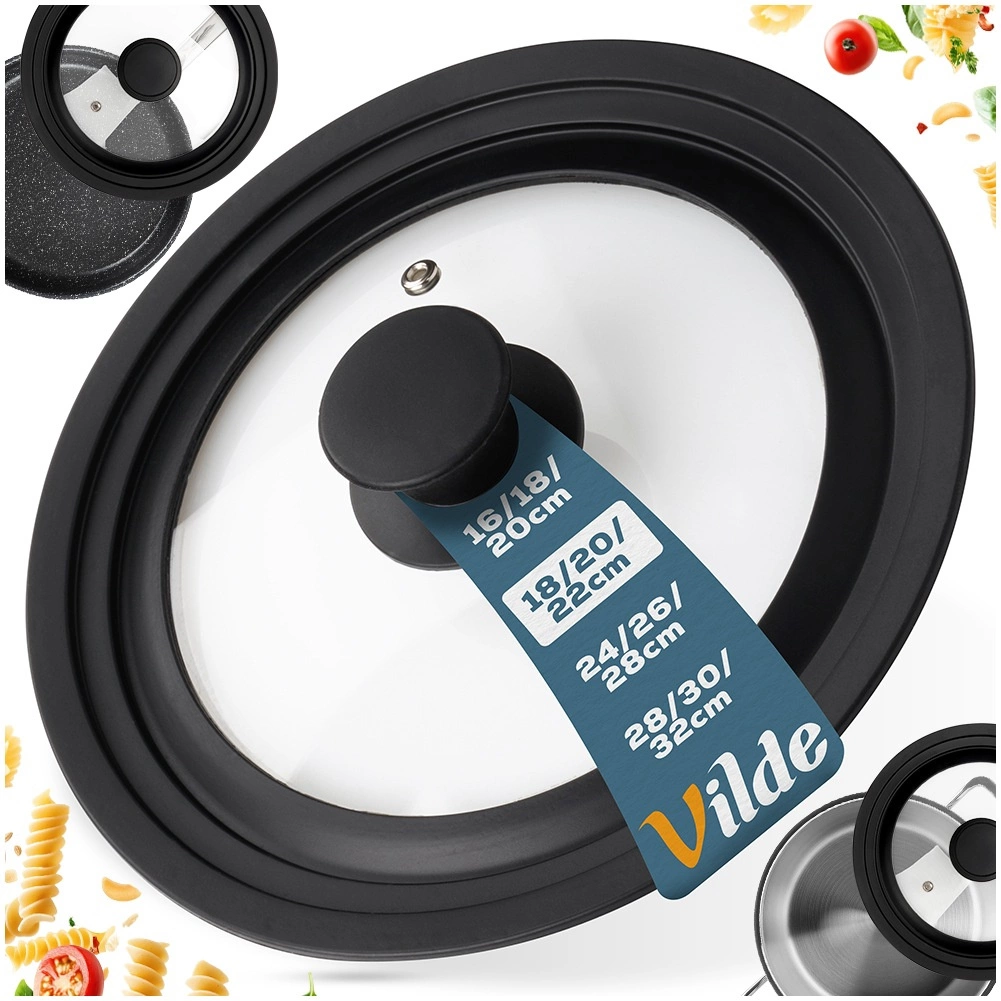 The Vilde universal lid combines durable tempered glass with a flexible silicone rim that seals reliably and protects cookware edges. The transparent glass lets you check your cooking without lifting the lid, saving time and energy. The integrated steam vent efficiently releases excess steam and helps prevent spills.