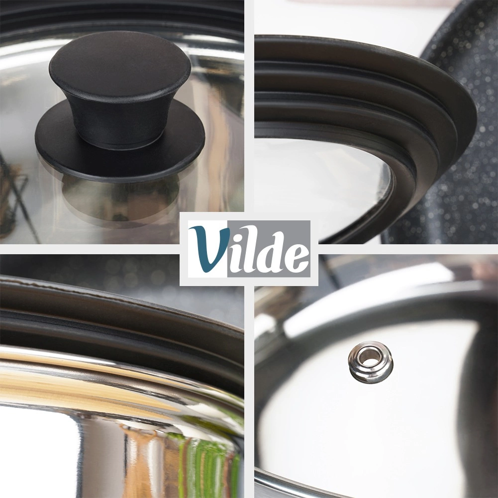 Transparent tempered glass withstands high temperatures, lets you monitor cooking without lifting the lid, and is dishwasher safe.