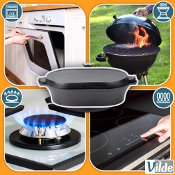 Care tip: After each use, wash, dry thoroughly, and lightly oil to prevent rust—this is a natural property of cast iron. The cookware has no non-stick coating. Regular care extends its lifespan. Original Vilde product from the CAST LINE.