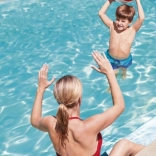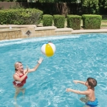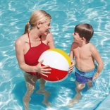 The multicolor BESTWAY beach ball is ideal for water games, seaside holidays, and weekends in the garden. Its vivid panels in red, blue, yellow, and white are clearly visible in the water and highlight a timeless summer style. A great choice for families looking for fun, movement, and shared moments.